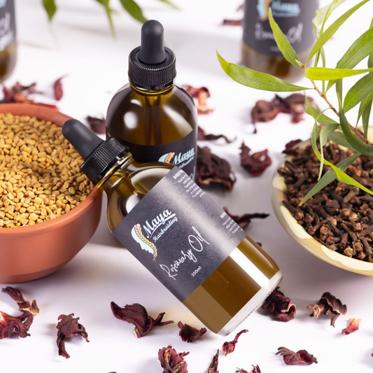 Everything is handmade in small batches using whole botanicals — not powders or extracts. Most hair oils are heat-extracted, which destroys the enzymes that make herbs effective. We cold-press and slow-infuse to preserve the active compounds. No mineral oil, no silicones, no parabens — just what your hair actually needs.